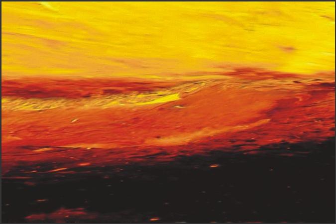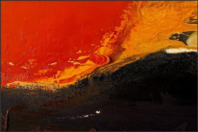 Phase 2: Es brodelt. Eruptionen der Licht-substanz. Feurige Kraft schleudert Wärme und Licht. Durchdringt die obrige Schwärze.