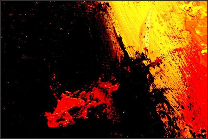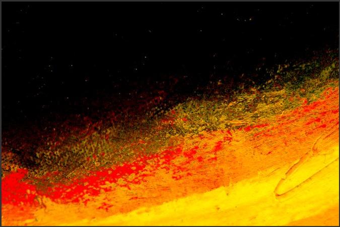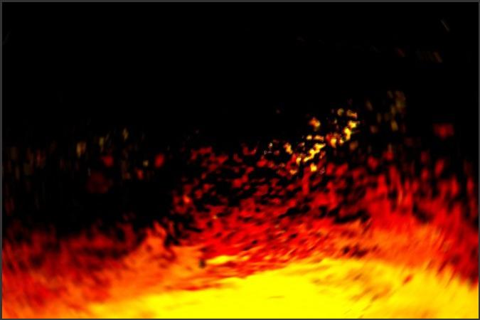 Phase 2: Es brodelt. Eruptionen der Licht-substanz. Feurige Kraft schleudert Wärme und Licht. Durchdringt die obrige Schwärze.
