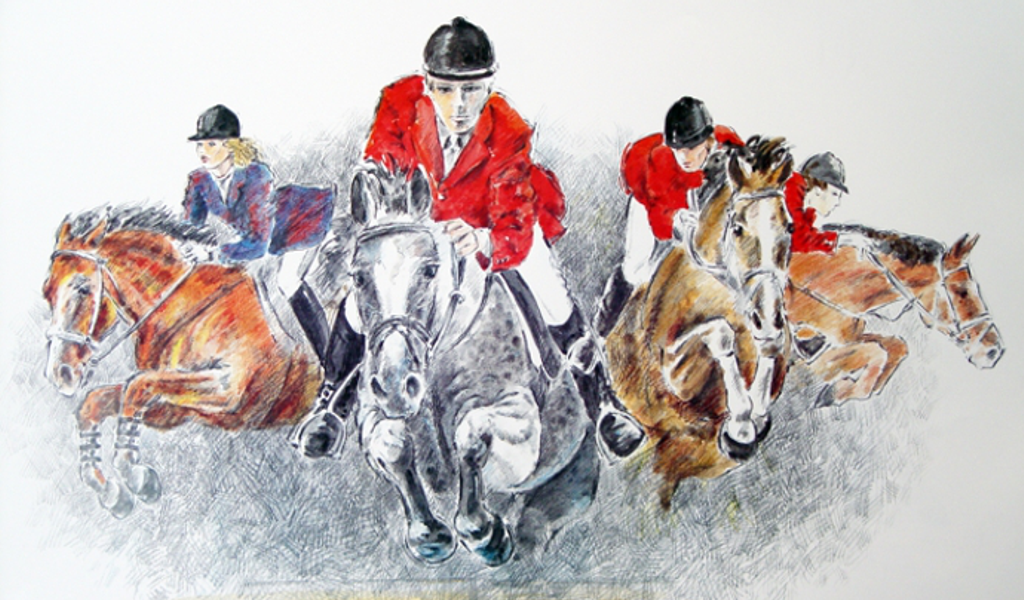Reitsport "Springen" - Artprint auf echtem Buettenkarton -